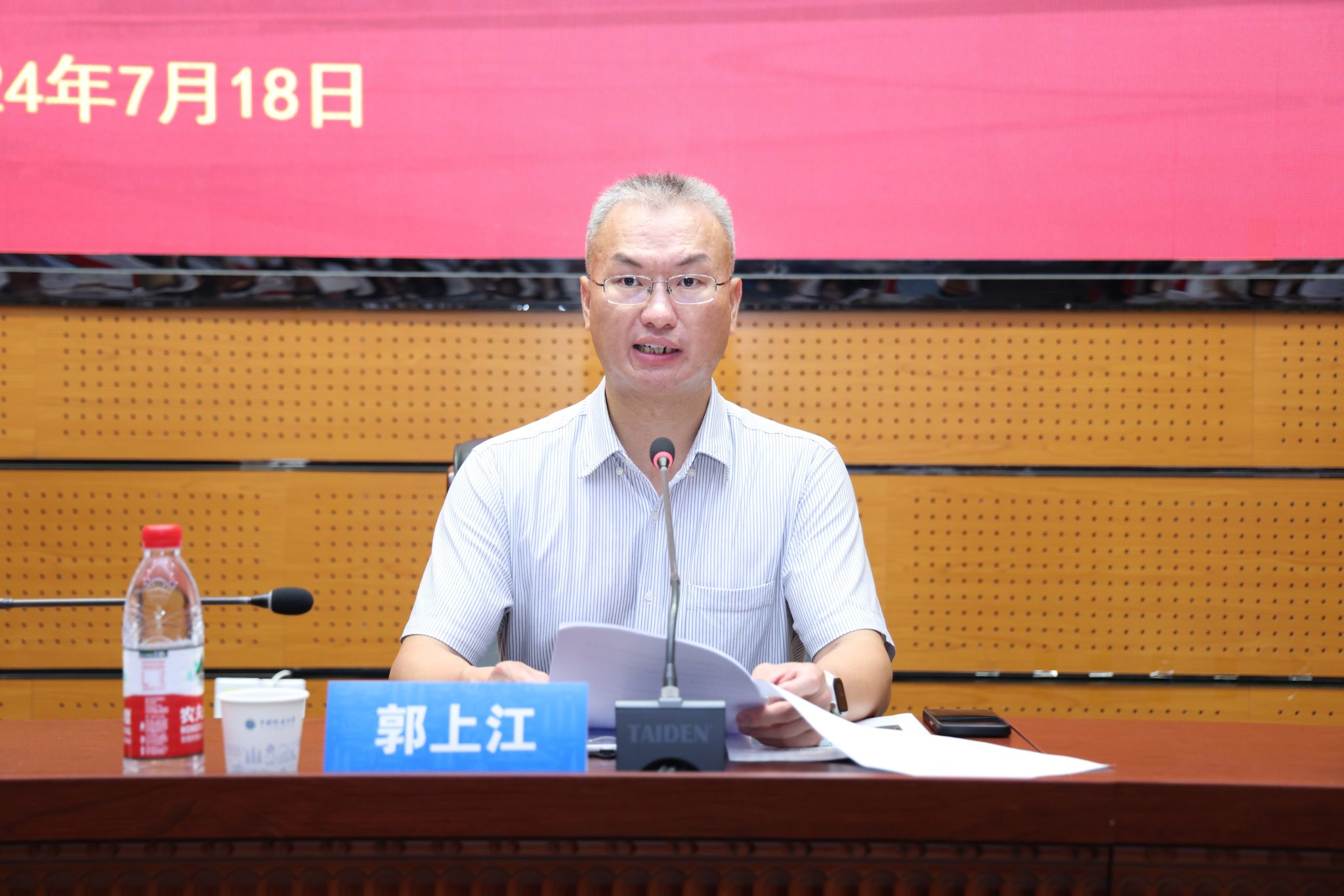 地大新聞網訊 (通訊員 史強 攝影 孫彥欽)7月18日,根據湖北省教育廳統一部署,2024年湖北省高校新入職教師崗前培訓開班典禮在我校舉行。校黨委副書記、紀委書記唐忠陽,參訓教師參加開班典禮。我校人力資源部部長郭上江主持典禮。