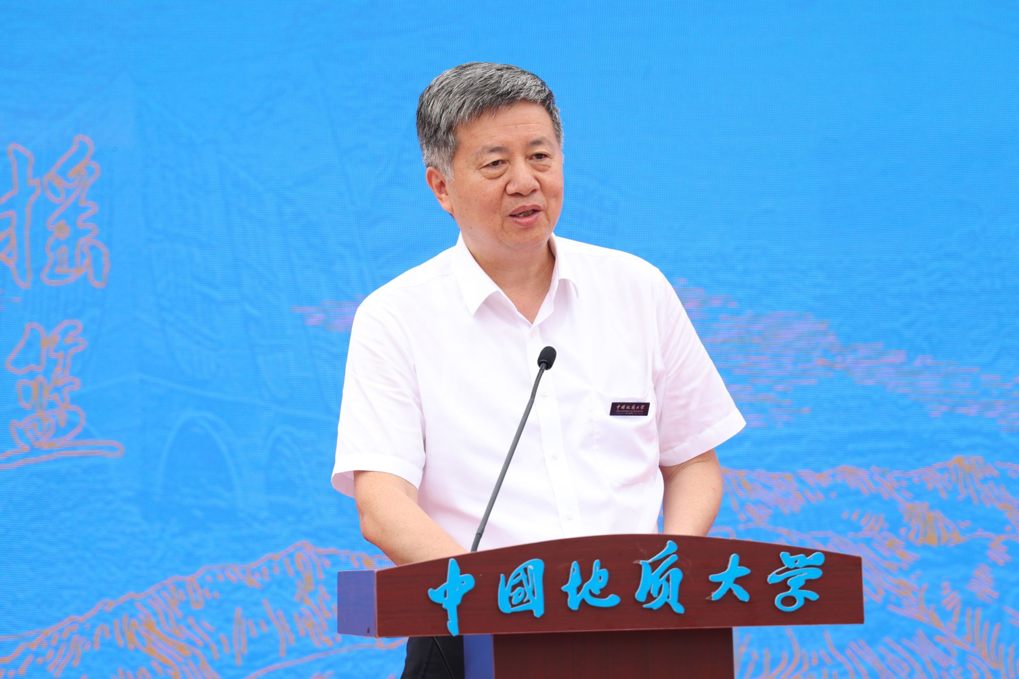 中國地質大學(武漢)校長李建威講話。他代表學校向蒞臨大會的領導和嘉賓表示熱烈歡迎,向長期扎根野外教學一線、為我國地學人才培養付出辛勤勞動、作出重要貢獻的廣大教職員工表示崇高敬意和衷心感謝。