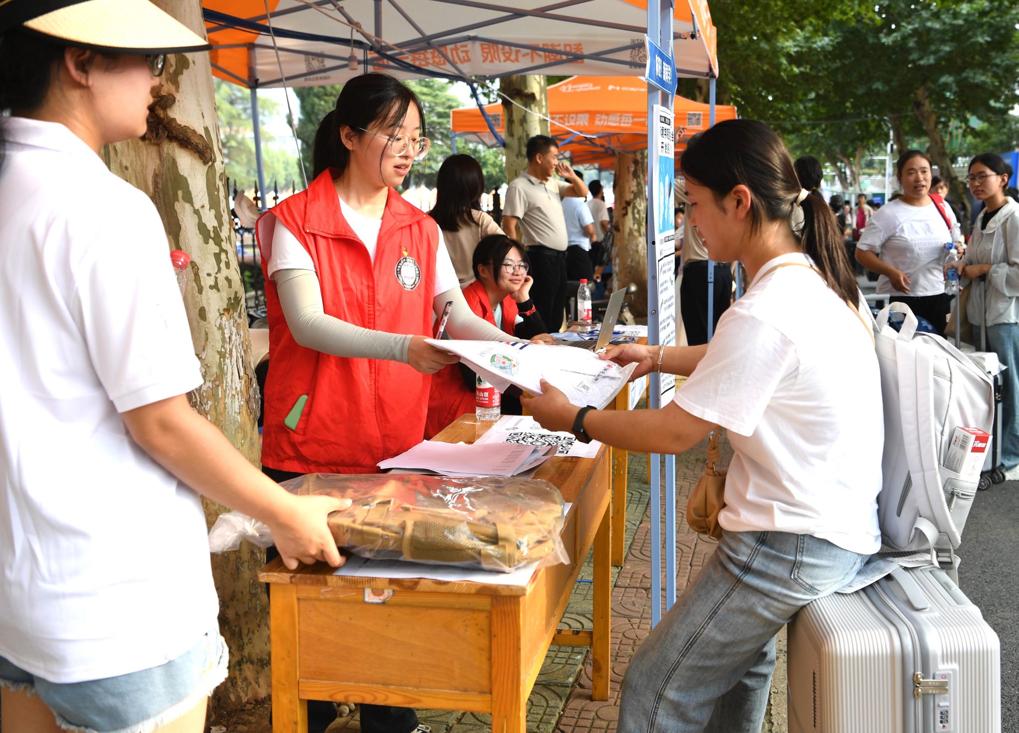 校園里,學生志愿者、后勤、保衛工作人員,為萌新們提供周到服務。大家不辭辛苦指揮交通、搬運行李,引導新生辦入學手續、辦理入住,帶著大家熟悉校園的角落。
