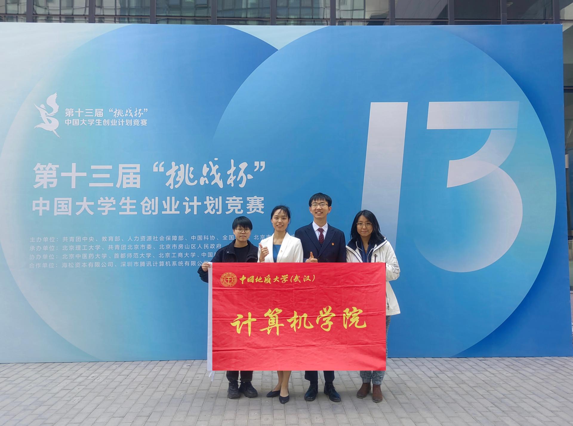 2023年2月,李歡歡(左1)帶領(lǐng)學(xué)生團隊參加“挑戰(zhàn)杯”大賽國家級決賽