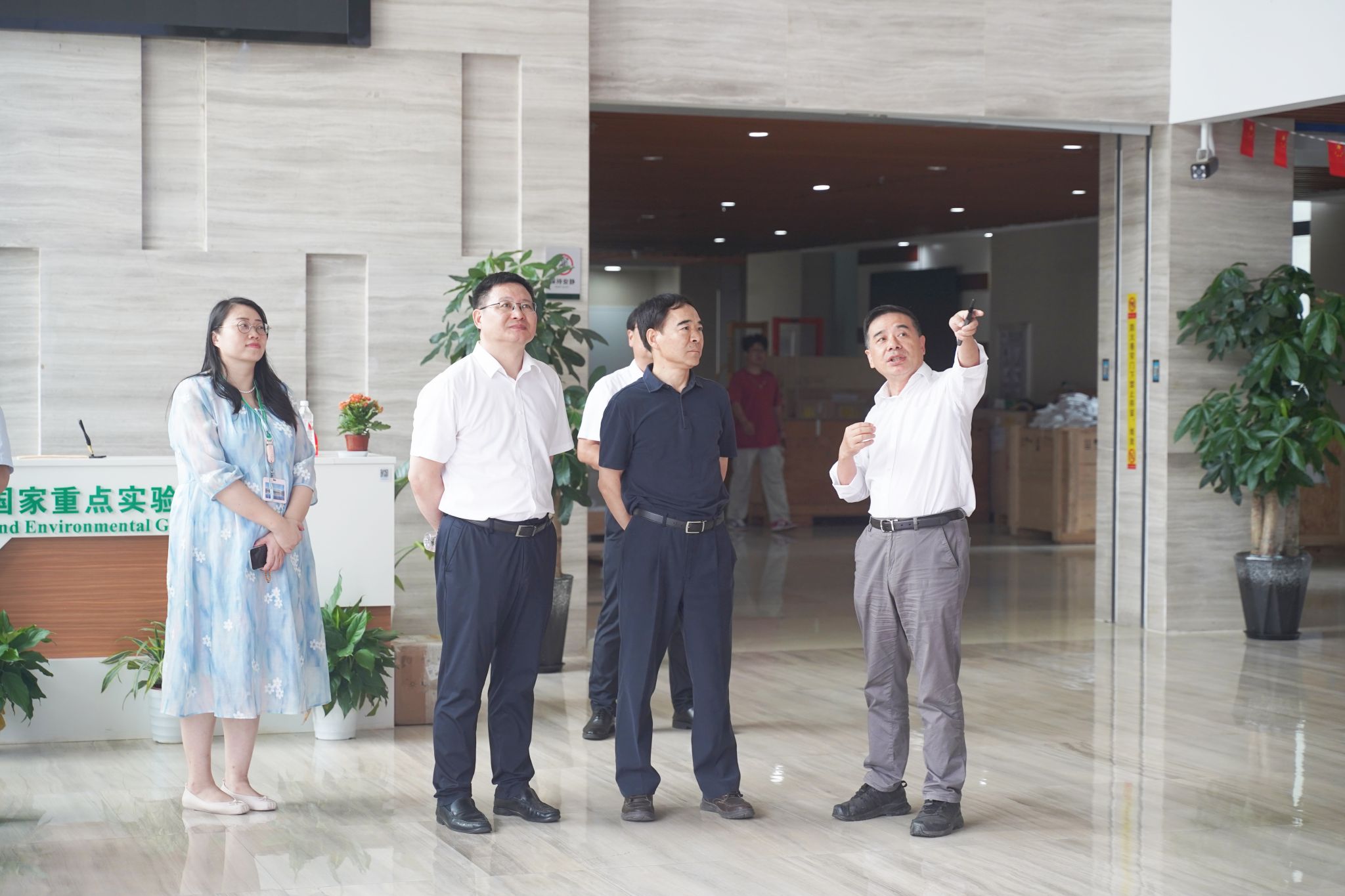 田福元、鄧立紅一行參觀了校區整體建設、運行情況。在生物地質與環境地質國家重點實驗室,實驗室副主任陳中強教授介紹了實驗室的基本情況、定位和目標、承擔的重大任務、標志性成果、研究隊伍與平臺建設等。