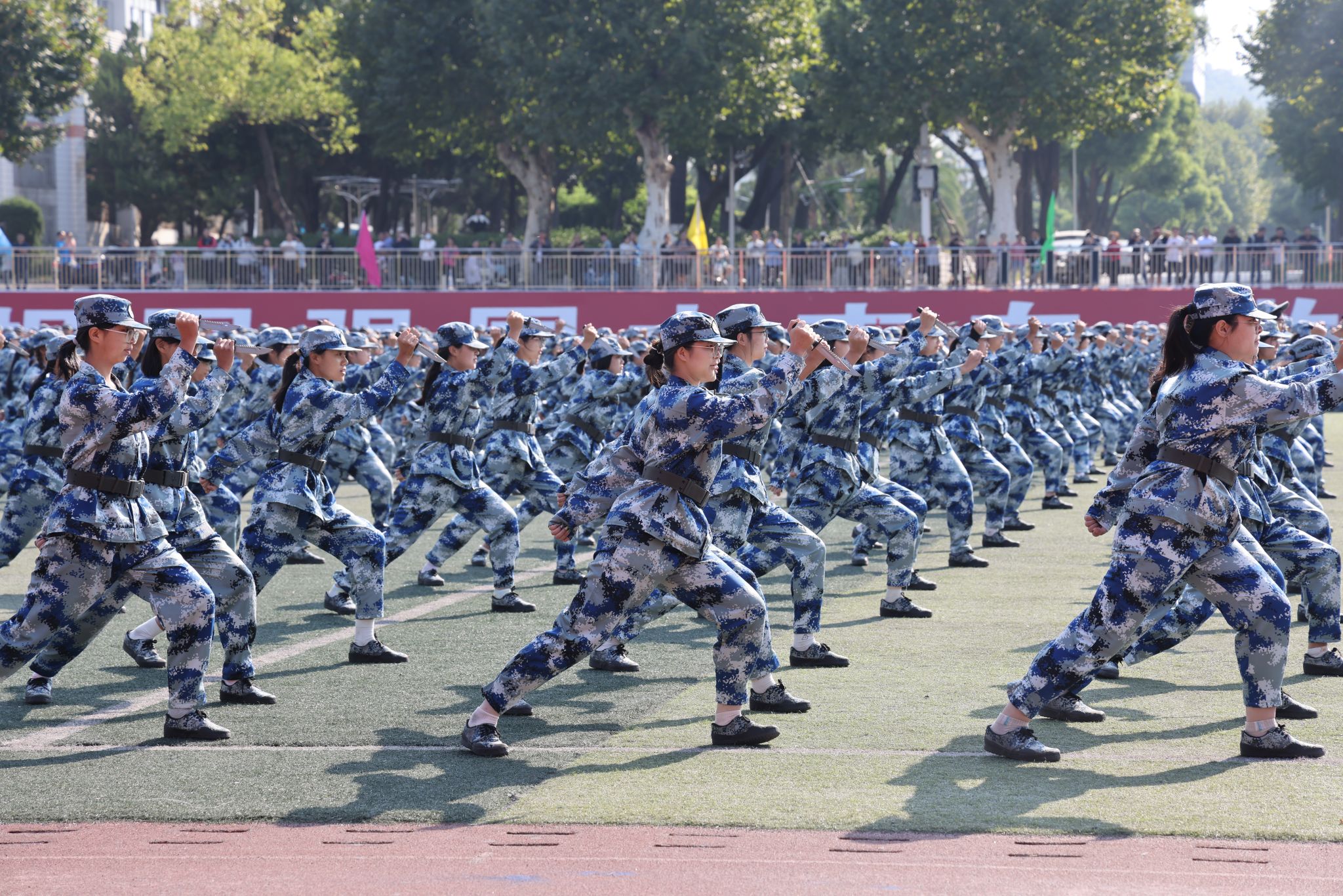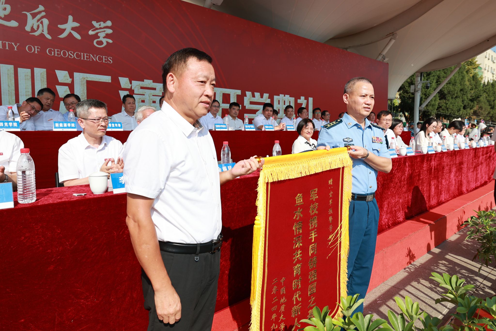地大新聞網訊 (記者 王俊芳 孫彥欽 焦思勤 梁睿華 學生記者 樊叢蓉)9月22日,我校2024級大學生軍訓匯演暨開學典禮,在南望山校區西區操場舉行。校黨委書記劉杰,校長李建威,中國科學院院士殷鴻福、金振民,教育部直屬高校黨建工作聯絡員謝守成,空軍預警學院學員四大隊政治委員尹斌上校,副校長王華,黨委副書記王林清,黨委副書記、紀委書記唐忠陽,黨委副書記王甫,黨委常委、黨委組織部部長、統戰部部長陳文武,教師代表、環境學院教授馬瑞,校友代表、深圳貝仕達克股份有限公司董事長肖萍,卓越工程師學院理事單位代表、奕龍(信通)集團董事長李清文,各教學科研機構、管理服務機構負責人,輔導員,高年級學生代表及2024級全體本科新生參加典禮。