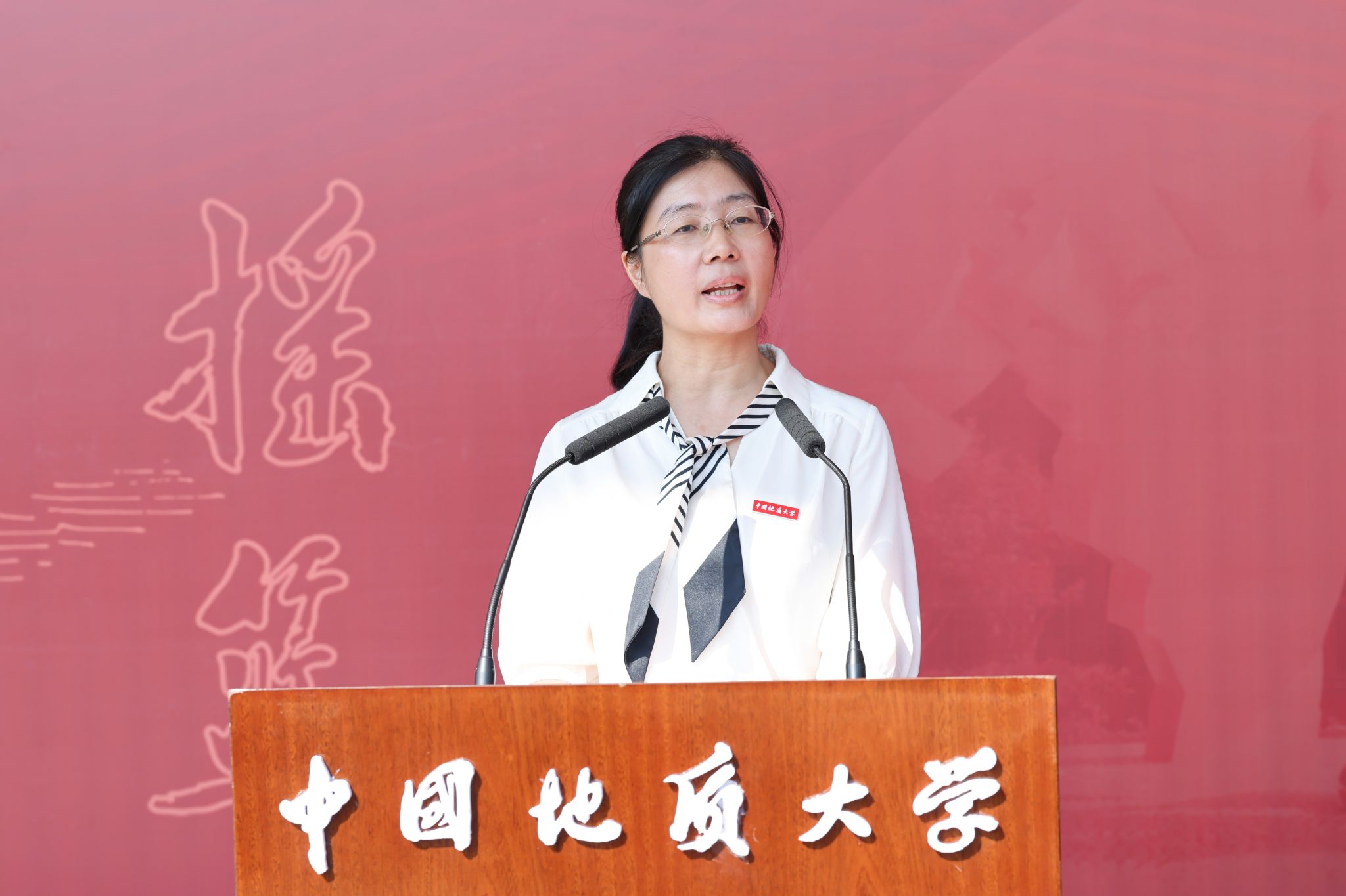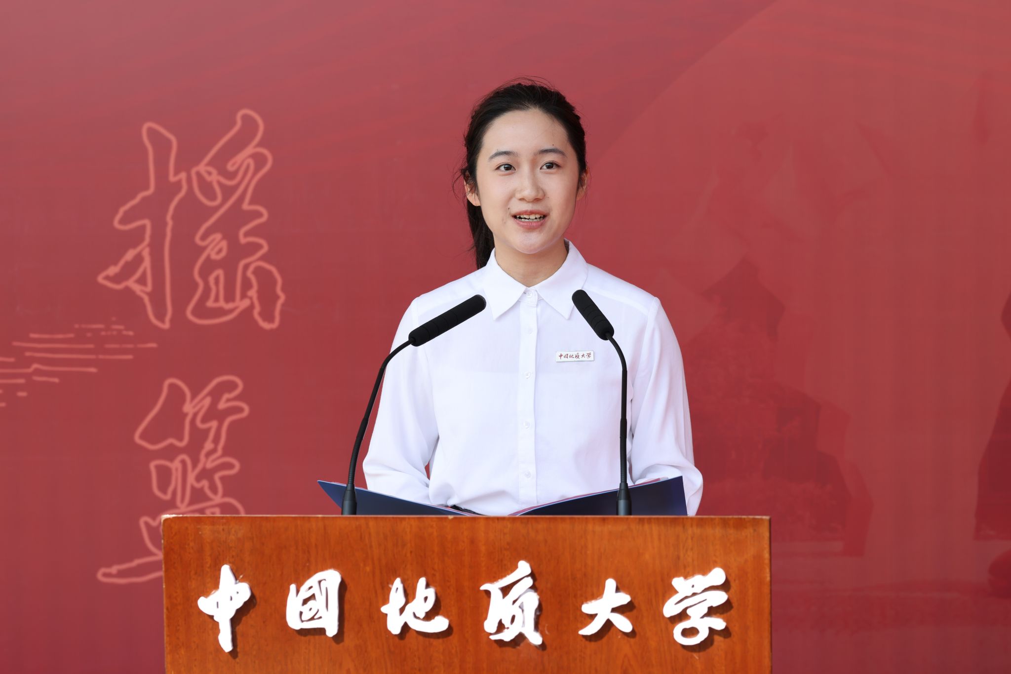 在校生代表、未來技術學院2021級本科生孫佳怡分享了自己以及地大學子們的成長故事。她說,“同行致遠”是地大學子的力量之源,“實干篤行”是地大學子的基因密碼,“挺膺擔當”是地大學子的時代烙印,希望新生們以同行致遠為前行動力,以實干篤行為優良基因,不僅成為知識的傳播者,更成為創新的實踐者,扎根中國大地,踐行地大擔當,以實際行動續寫教育的輝煌篇章。