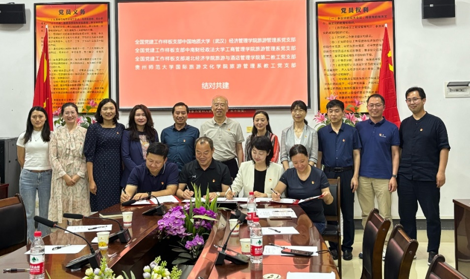 旅游管理系黨支部作為首批“全國黨建工作樣板支部”,堅守立德樹人初心,聚焦旅游強國建設,發揮“文化+旅游、地學+旅游、科技+旅游”專業特色,創新“黨建+教學科研+結對領航”實踐,將黨課講在祖國的大地上,開展形式多樣的師生“結對領航”,實現“知行合一 以文化人”。相關成果獲國家級教學成果二等獎、國家級一流課程及“最美慕課”全國一等獎等榮譽。圍繞長江國家文化公園建設開展研究,多項成果獲省委領導、省政府領導肯定性批示。積極培養具有地學特色的文旅復合型人才,為文化傳承、鄉村振興及旅游業高質量發展貢獻學科力量。
