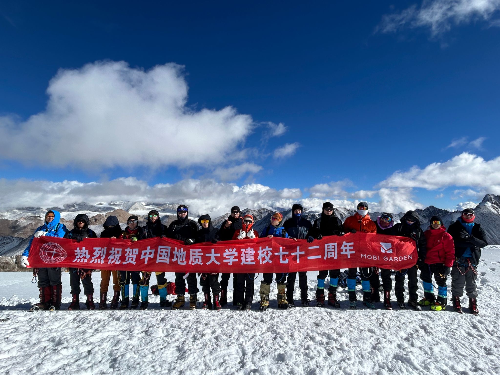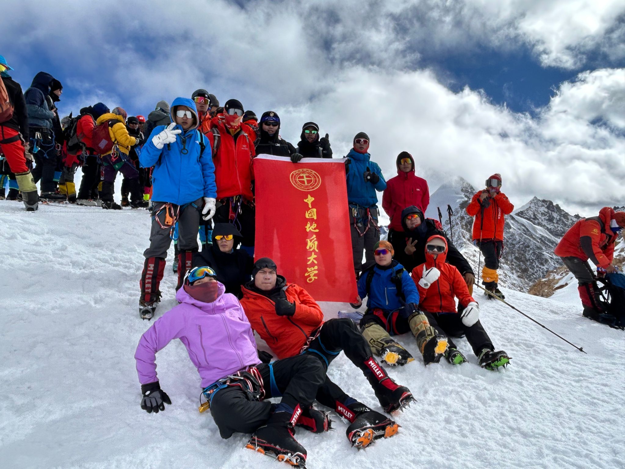 秉承地大“扎根中國,胸懷天下,勇攀高峰,追求卓越”的攀登精神,師生校友踴躍報名參加洛堆峰登山探險活動,通過為期5天的雪山攀登研討會、技術培訓、登山文化交流以及高海拔適應。登山隊于10月5日凌晨4點開始了洛堆峰的攀登活動,共有來自體育學院、計算機學院、環境學院、藝術與傳媒學院、工程學院5個學院的21位學生,2位老師以及6位校友參加。經過3至6小時的艱苦攀登,共有28位師生校友成功登頂,創造了集體登頂的新紀錄,用實際行動踐行了地大攀登精神。