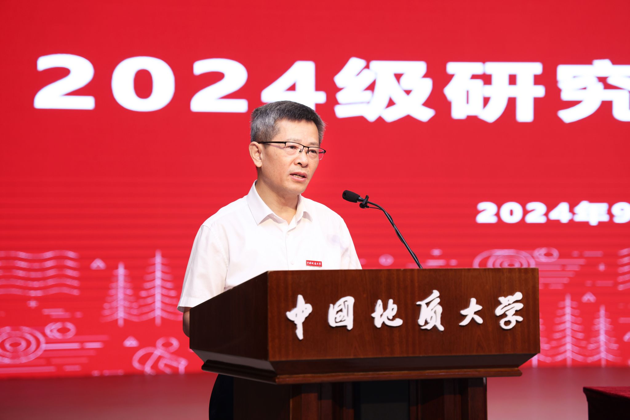 校長李建威向所有研究生新生到地大求學(xué)表示熱烈歡迎,“地大因你們的加入不斷煥發(fā)出新的活力”。他以《矢志創(chuàng)新 攀登不止》為題發(fā)表講話。他說,地大是一所底蘊(yùn)深厚、守正創(chuàng)新的大學(xué),更是一所追求卓越、勇攀高峰的大學(xué)。