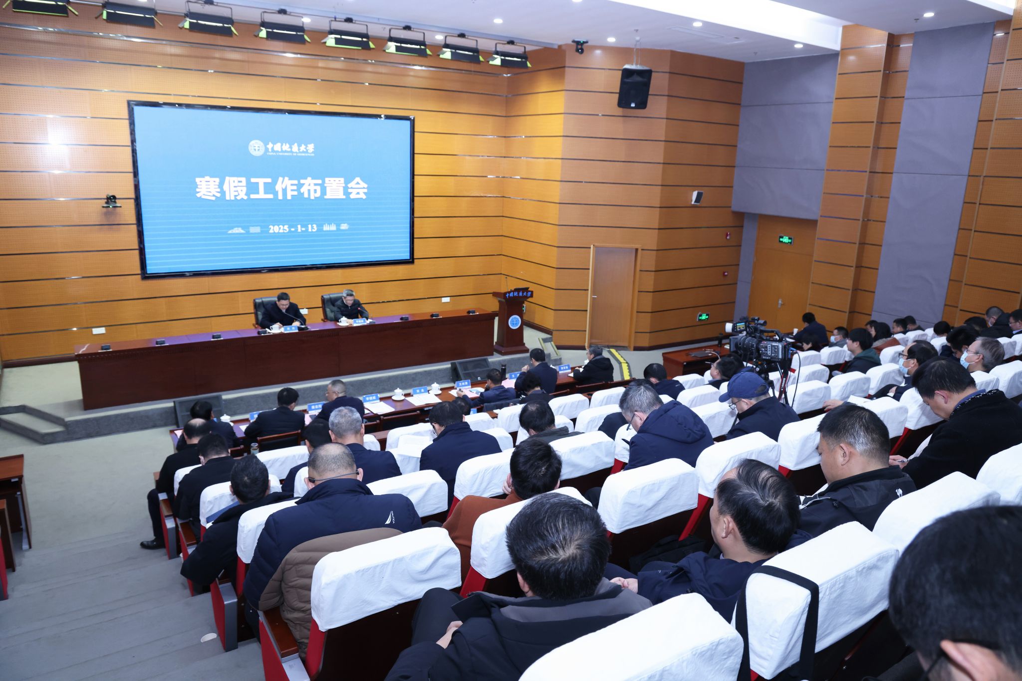地大新聞網訊 (記者 孫彥欽)1月13日,我校寒假工作布置會在南望山校區教學綜合樓舉行。在校校領導,黨委常委,校長助理,全體中層干部參加會議。校黨委書記劉杰主持會議。