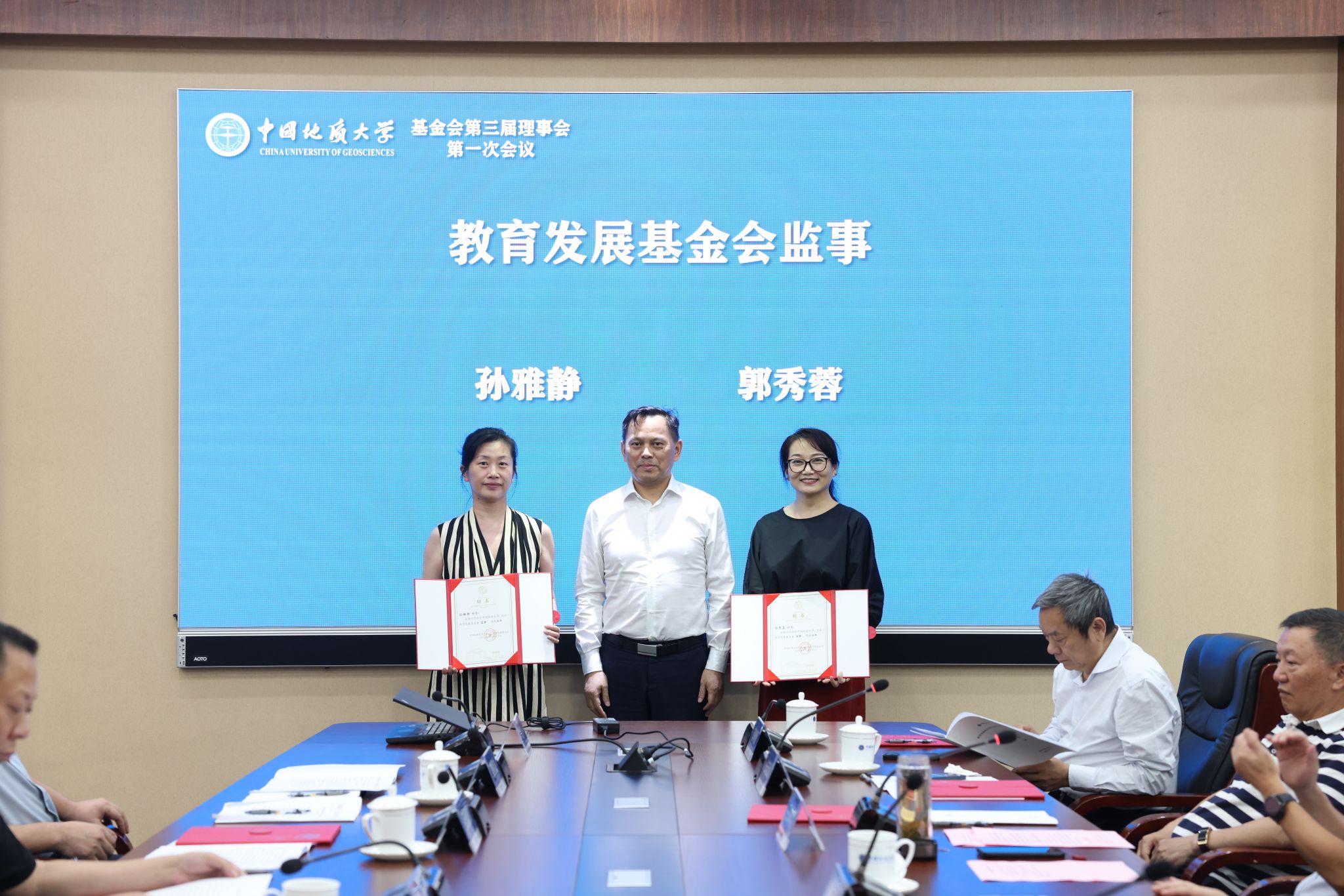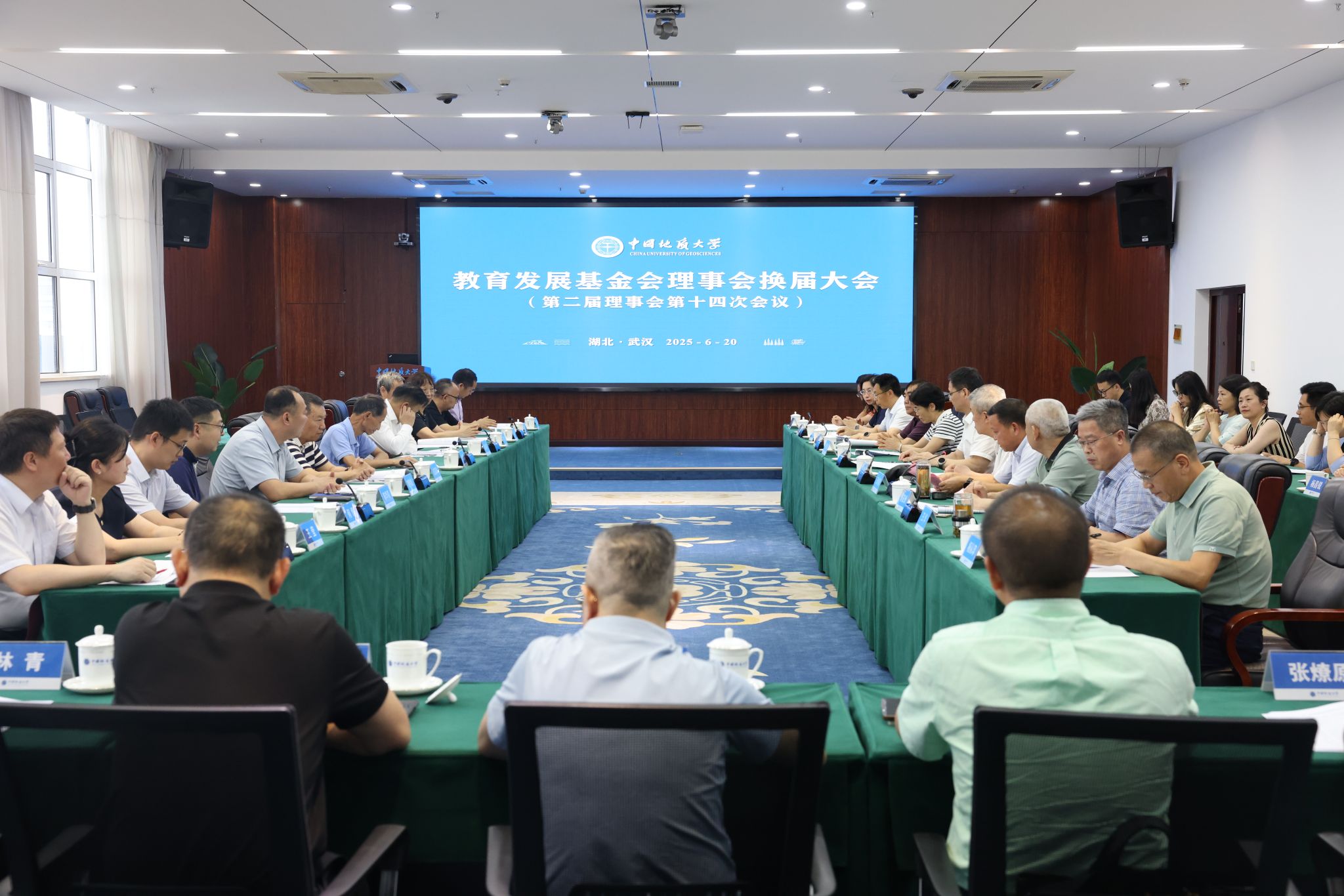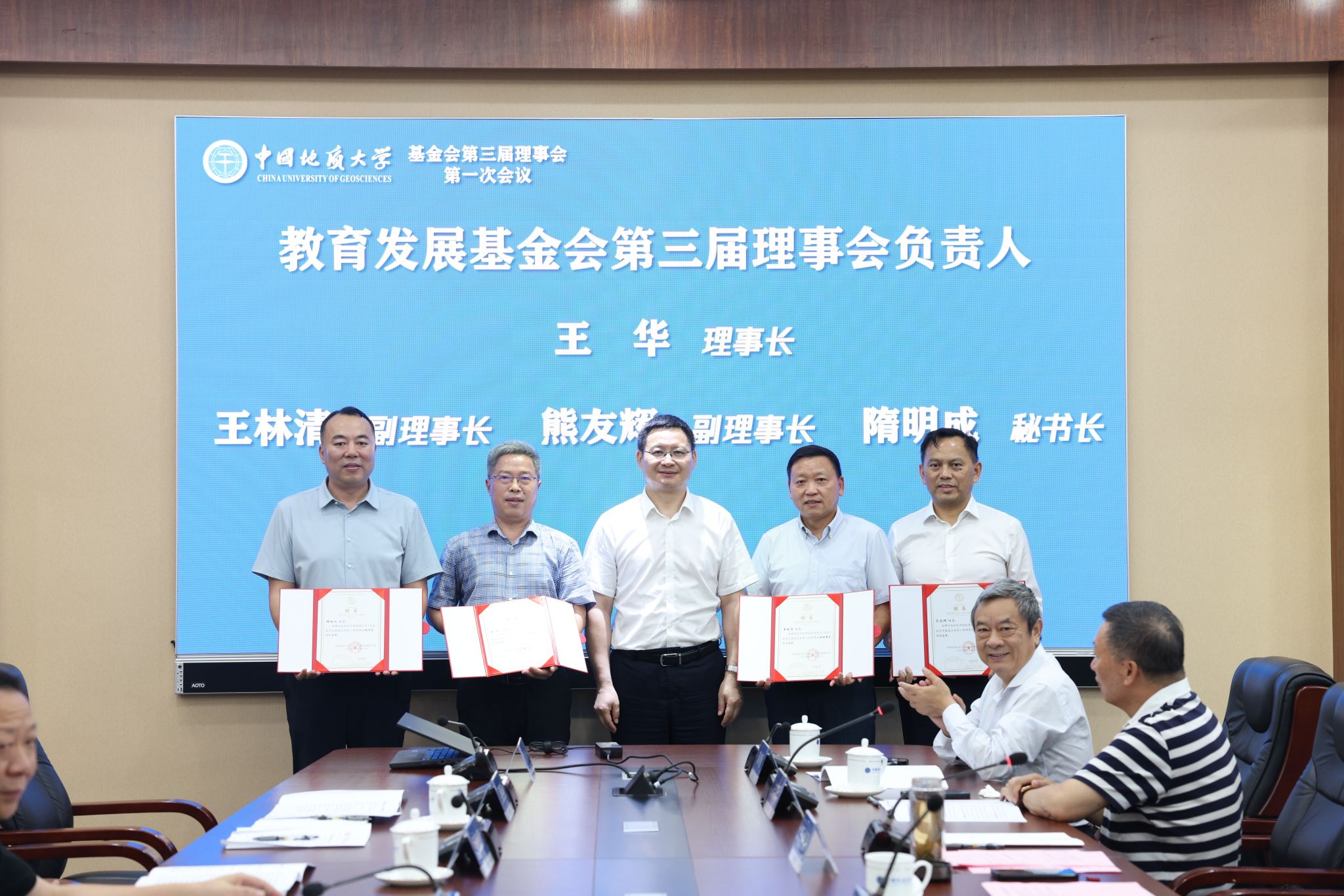地大新聞網訊 (通訊員 袁晗 袁瀟 攝影 楊小櫻)6月20日,我校教育發展基金會(以下簡稱“基金會”)換屆大會暨第三屆理事會第一次會議舉行。校黨委書記劉杰、黨委副書記王林清,原副校長、資源學院教授王華,基金會第二屆、第三屆理事會成員、基金會監事參加會議。王林清主持會議。