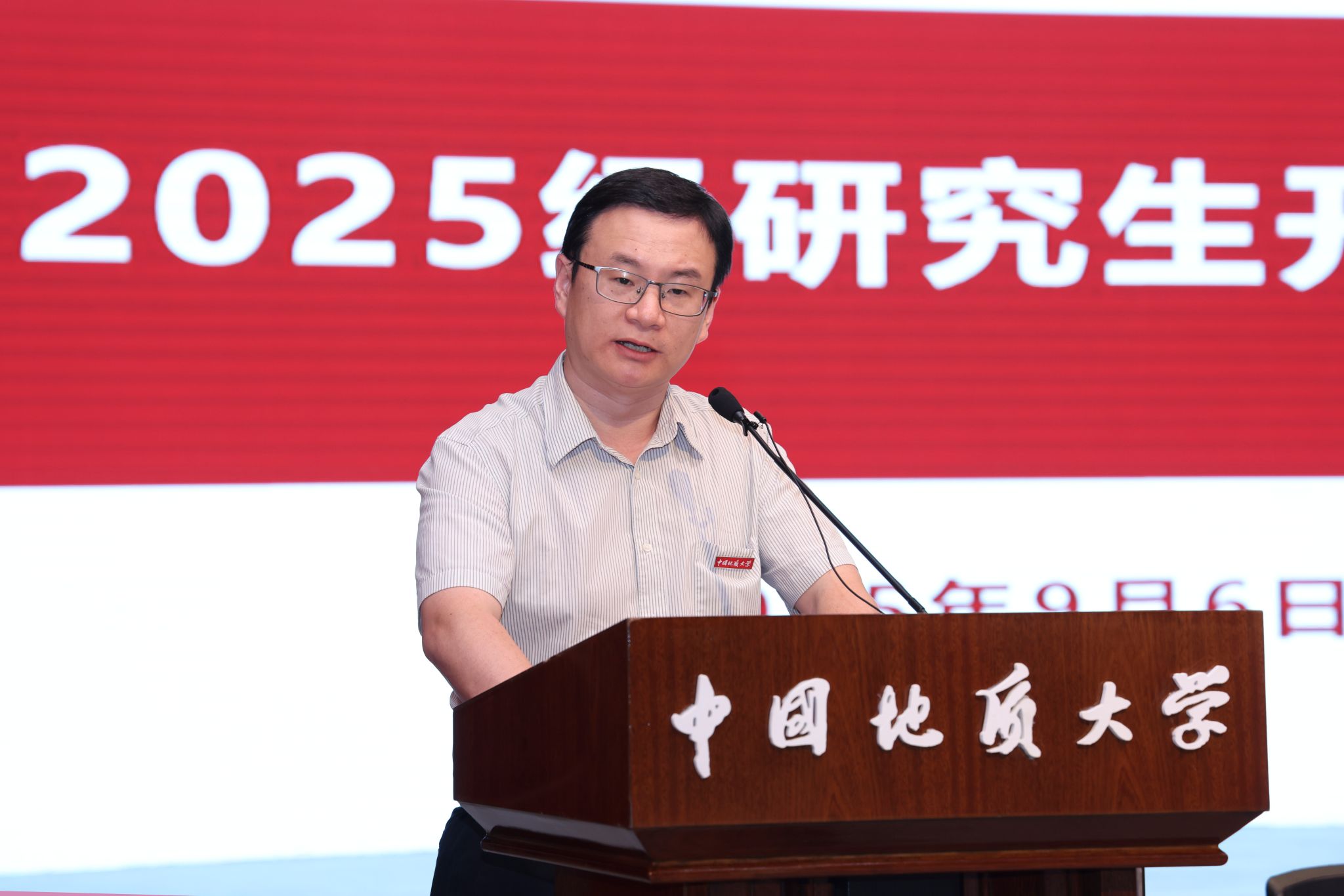 校長李建威向所有研究生新生到地大求學(xué)表示熱烈歡迎,他以《探索未知 創(chuàng)新無限》為題發(fā)表講話。他說,地大是我國高質(zhì)量研究生教育的先行者、探索者和推動者,為新中國的工業(yè)化和現(xiàn)代化建設(shè)輸送了一大批高素質(zhì)專門人才,做出了重要的歷史貢獻(xiàn)。地大七十三載初心不改、弦歌不輟、奮斗不止,紅色基因代代相傳,教育報國初心如磐,地大精神歷久彌新。