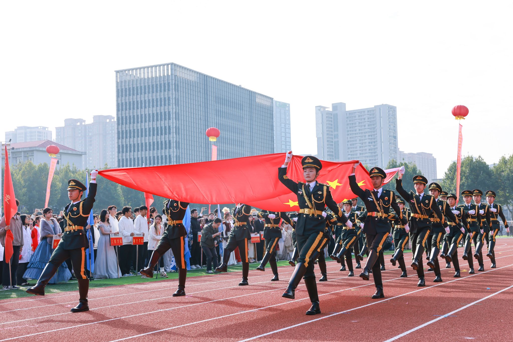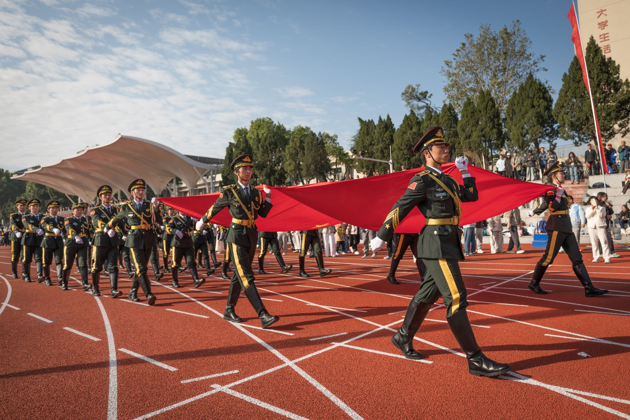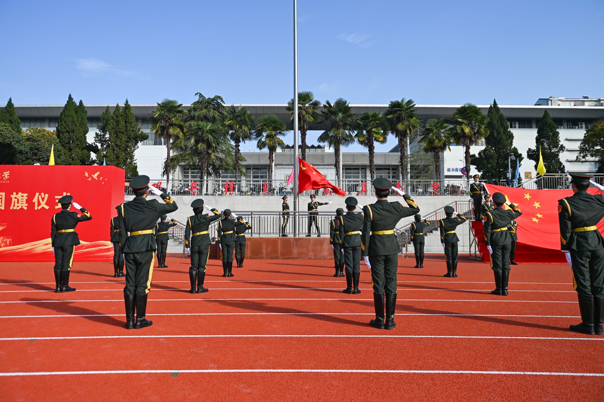 10月24日,我校在南望山校區西區運動場隆重舉行迎接天安門國旗儀式。全體在校校領導,各學院、管理與服務機構相關負責人,以及師生代表參加儀式。