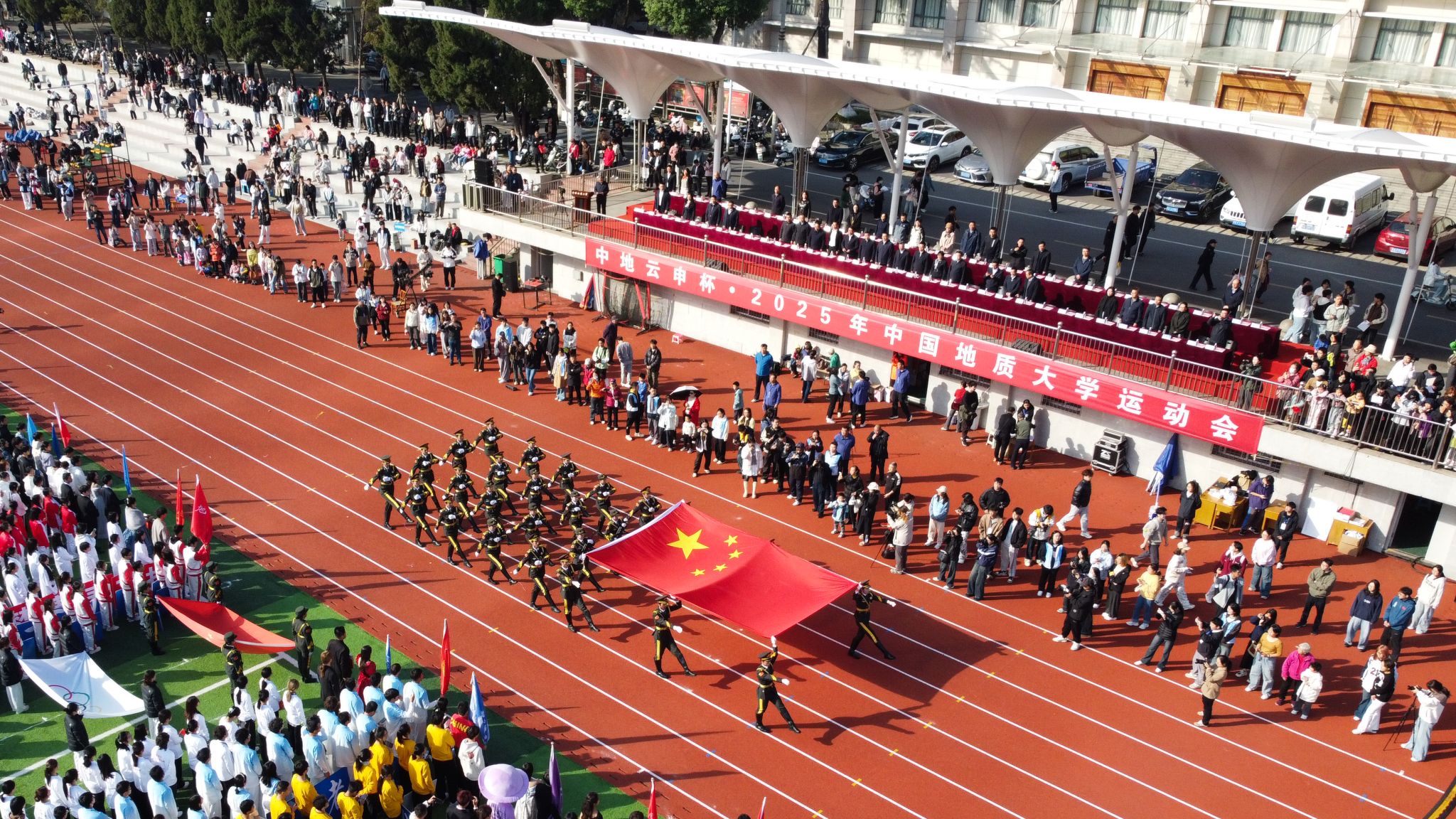 地大新聞網訊 晨光啟幕,五星閃耀。今年的秋季運動會上,迎來了一面具有特殊意義的國旗,它于2012年11月7日,中國地質大學60周年校慶日,在天安門廣場升起,見證著大國崛起的光榮和夢想。這面國旗將讓攀登精神與愛國情懷在地大交相輝映,點燃為夢想拼搏的火炬。