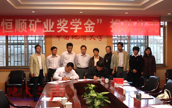 9月28日,中國地質大學(武漢)“恒順礦業獎學金”捐助儀式舉行,校黨委書記郝翔與湖北恒順礦業有限責任公司董事長嚴煒共同簽署了校友捐贈協議書,雙方將在科技服務、人才培養等方面展開交流合作。(郝良偉攝)