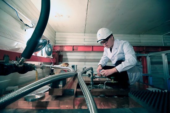 2022年10月,四川涼山,95后清華大學工程物理系博士生維護實驗設備,“守株待兔”探測暗物質(zhì)。視覺中國供圖