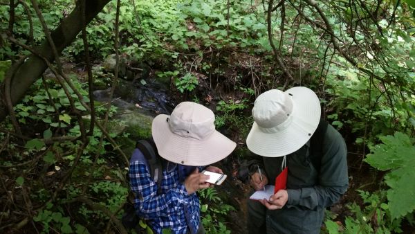 隊員(左一歐陽城楓,右一趙立民)在進行野簿記錄。