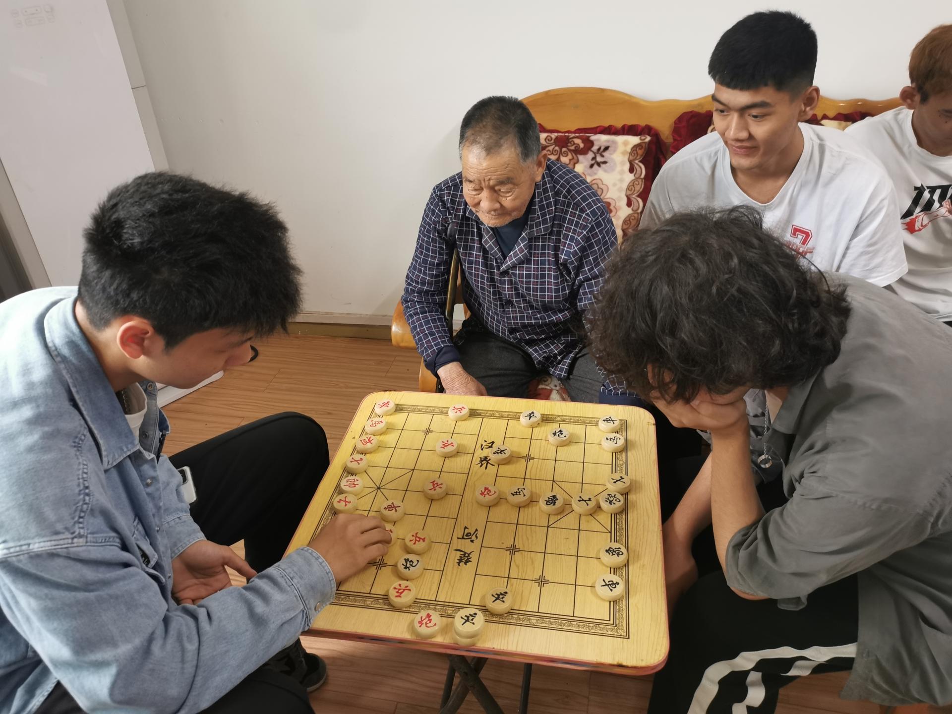 同學們親熱地圍坐在老人們的身邊,與老人們進行交流談心,并和老人一起下棋。“要吃得了苦,多為祖國建設做貢獻。”老人們囑咐同學們要珍惜現在來之不易的生活,在和平年代也要發揚吃苦精神,多做貢獻。