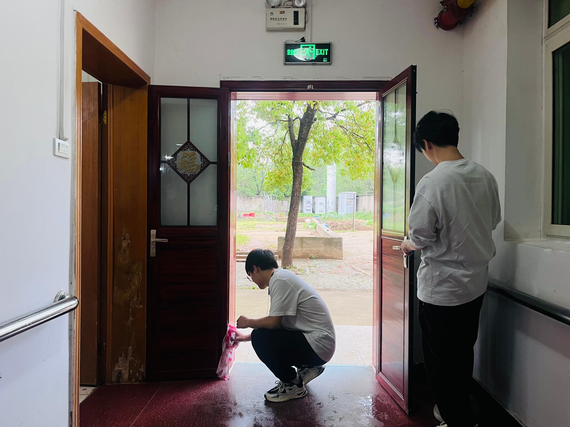 同學們來到社會實踐活動的第一站“紅安光榮院”,這里生活著13名參加過抗美援朝戰爭的老軍人以及烈屬等。90余名同學分為多個小組,幫助紅安光榮院進行了衛生大掃除。