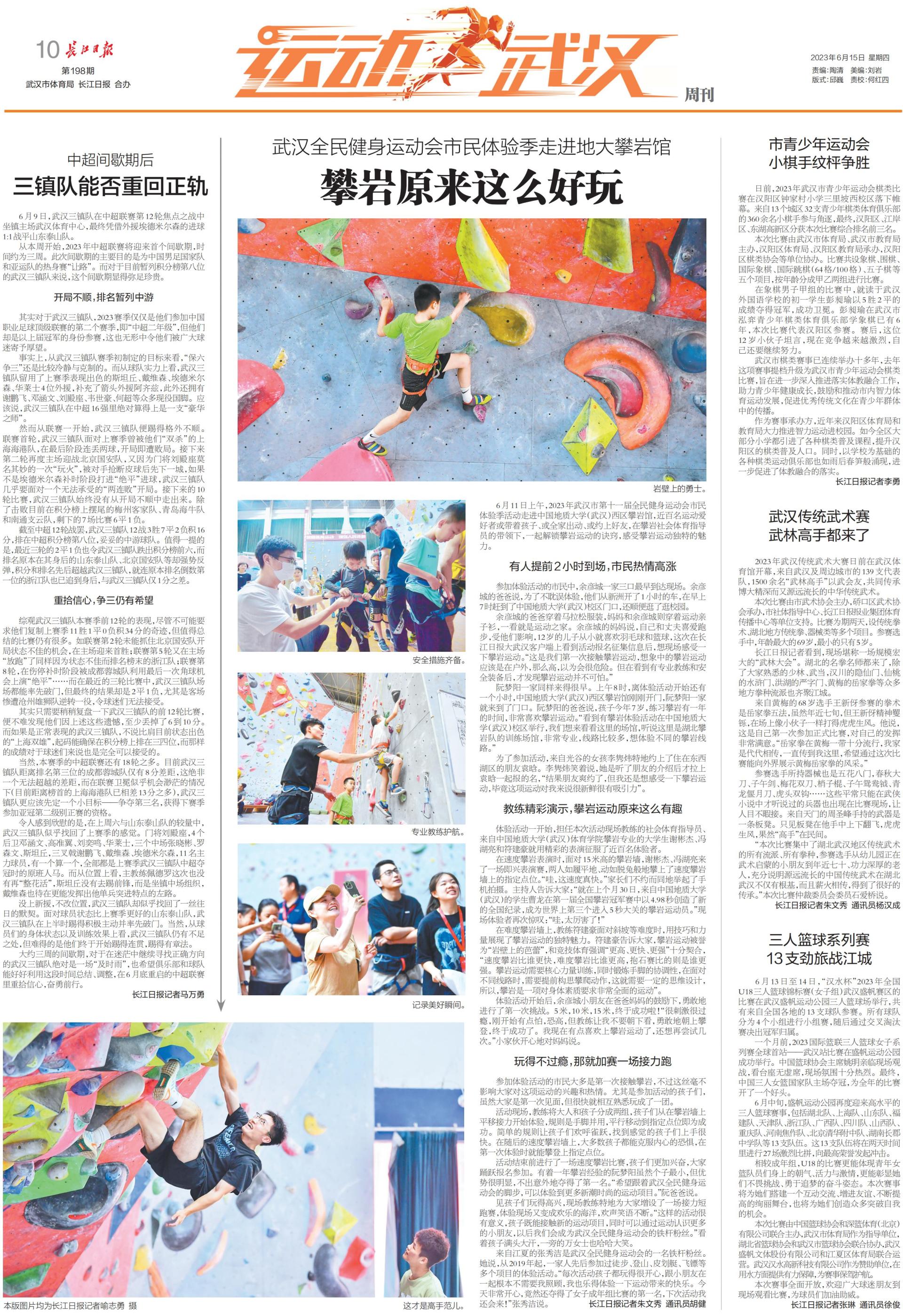 6月11日上午,2023年武漢市第十一屆全民健身運動會市民體驗季活動走進中國地質大學(武漢)西區(qū)攀巖館,近百名運動愛好者或帶著孩子、或全家出動、或約上好友,在攀巖社會體育指導員的帶領下,一起解鎖攀巖運動的訣竅,感受攀巖運動獨特的魅力。