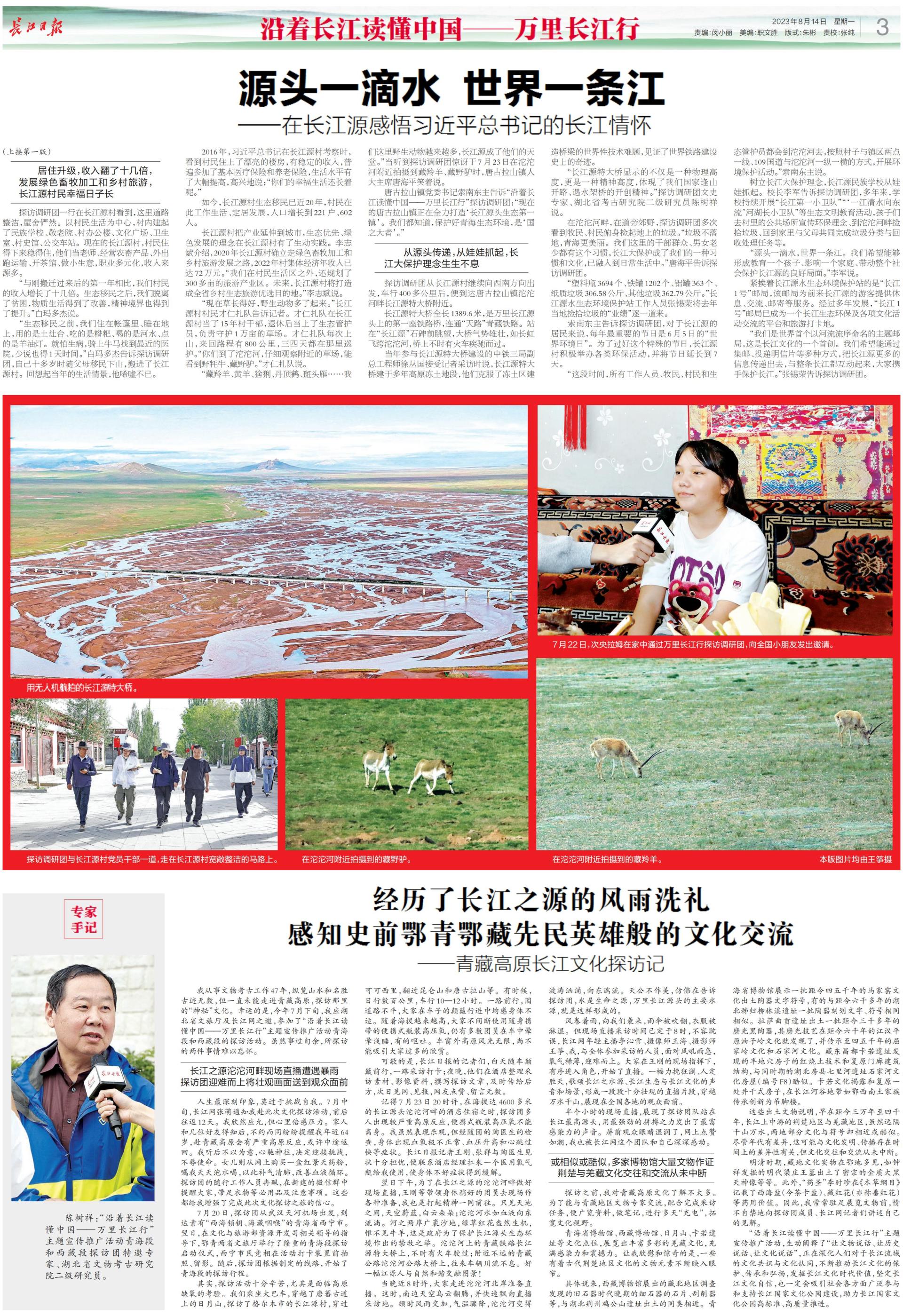 循著習近平總書記的長江足跡,由文化和旅游部資源開發司指導、湖北省文化和旅游廳主辦的“沿著長江讀懂中國——萬里長江行”探訪調研活動,近日走進長江源。探訪調研團一行傳承弘揚長江文化,助力長江國家文化公園建設,感悟習近平總書記的長江情懷。