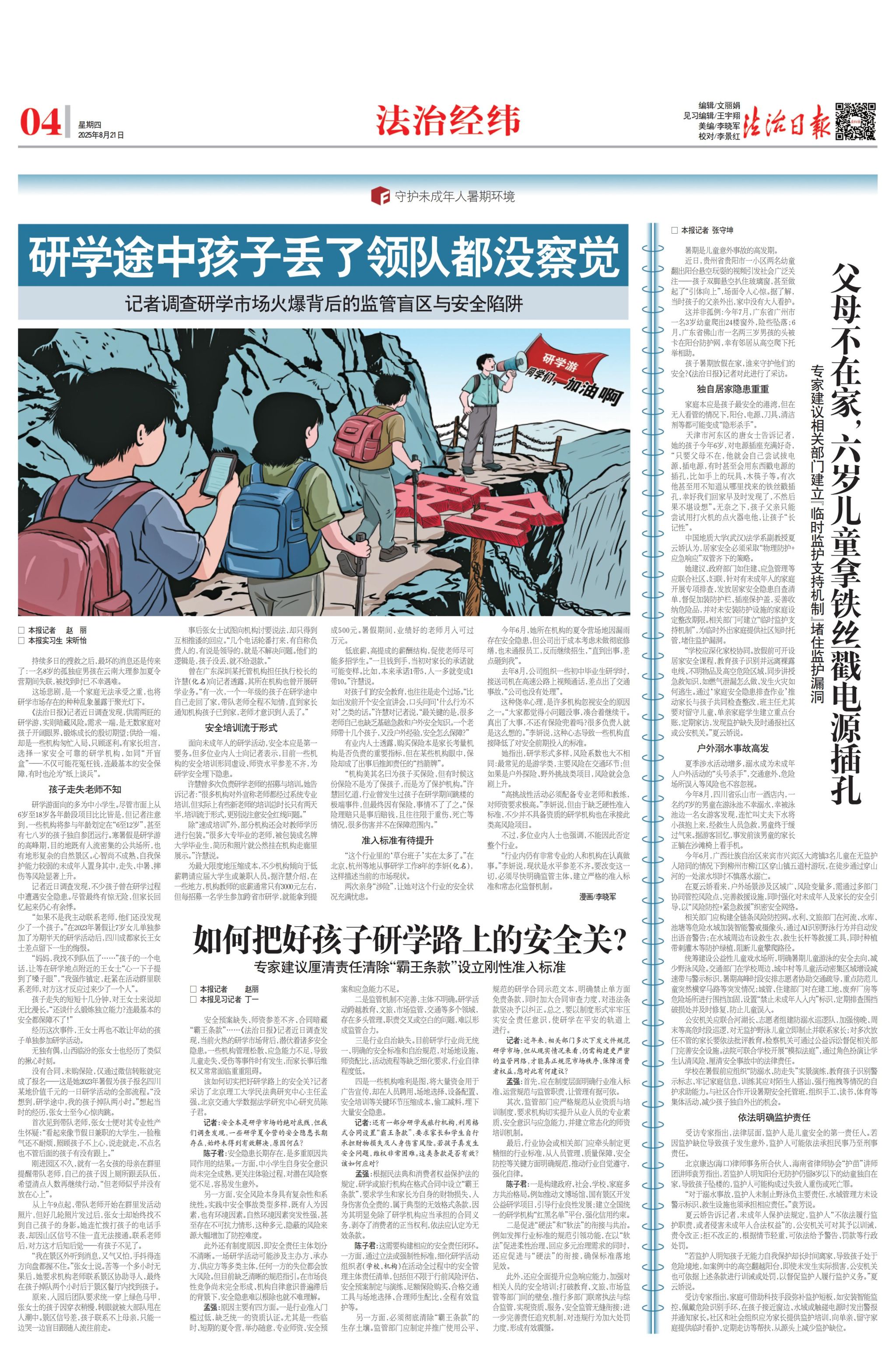 孩子暑期放假在家,誰(shuí)來(lái)守護(hù)他們的安全?《法治日?qǐng)?bào)》記者對(duì)此進(jìn)行了采訪(fǎng)。