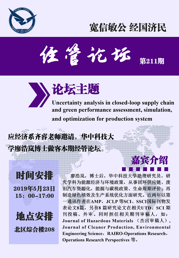 [5月23日]經管論壇:華中科技大學廖浩嵐博士學術報告