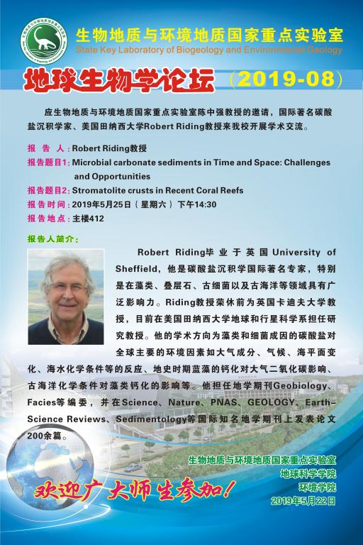 [5月25日]地球生物學論壇:國際著名碳酸鹽沉積學家、美國田納西大學Robert Riding教授學術報告