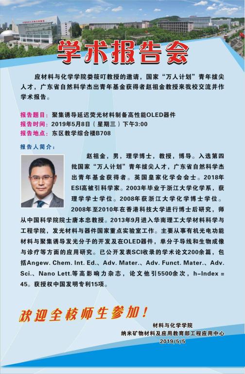 [5月8日]材化學術論壇:華南理工大學材料科學與工程學院趙祖金教授學術報告