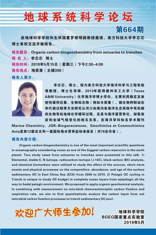 [5月15日]地球系統科學論壇:南方科技大學李芯芯博士學術報告