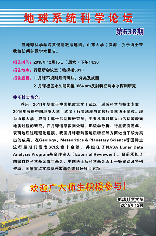 [12月15日]地球系統(tǒng)科學(xué)論壇:山東大學(xué)(威海)喬樂博士學(xué)術(shù)報(bào)告