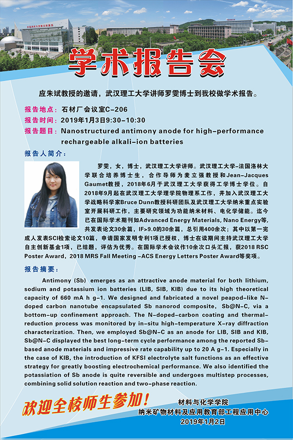 [1月3日]材化學(xué)術(shù)論壇:武漢理工大學(xué)講師羅雯學(xué)術(shù)報告