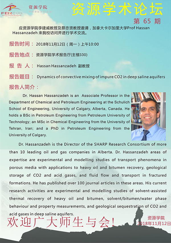 [11月12日]資源學(xué)術(shù)論壇:加拿大卡爾加里大學(xué) Prof Hassan Hassanzsdeh 學(xué)術(shù)報(bào)告