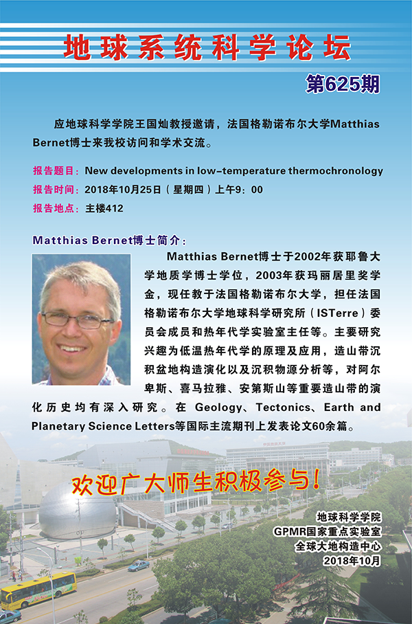 [10月25日]地球系統科學論壇:法國格勒諾布爾大學Matthias Berne博士學術報告